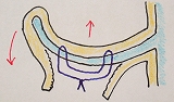 これにより耳介全体が後方へ倒れます。