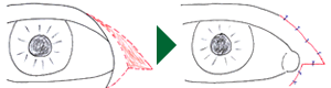 この場合は、内眥形成術(目頭切開、目頭形成)を追加あるいは同時に行います。
